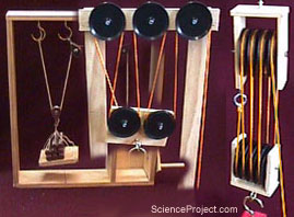 wood, nylon string, pulleys and some other material to make models of a