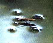Later in a camping trip I saw mosquitoes that land on the water. I could see that their weight has actually pushed the water surface inward. I wondered why they didn't get wet and why their legs didn't go under the water.